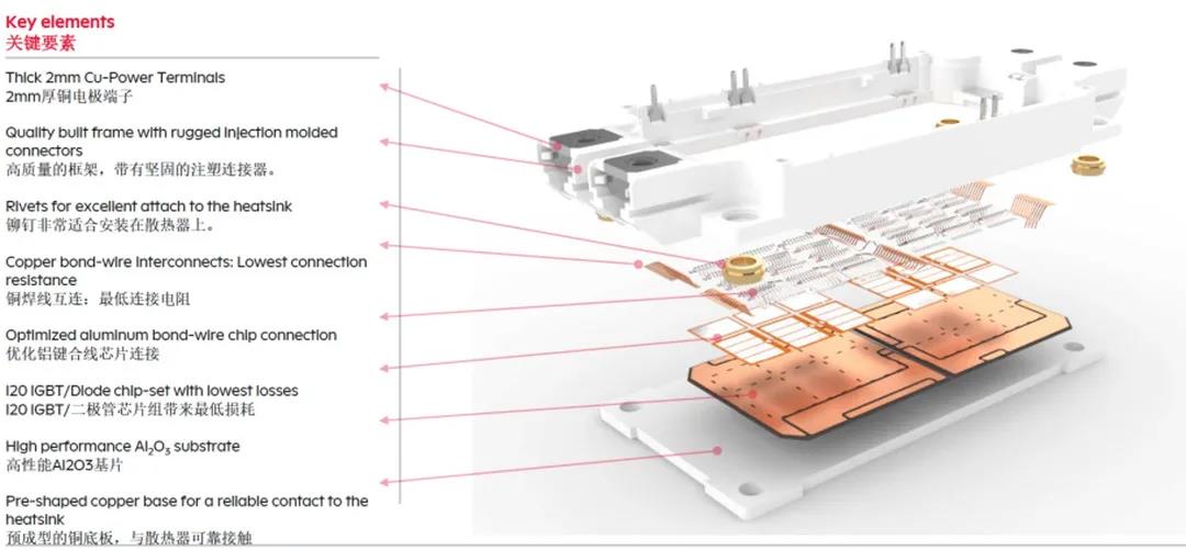 单纯的将IGBT芯片从模块中取出用碳化硅芯片替代,不足以让碳化硅芯片性能完全发挥。因此,同行企业都在开发单面水冷或双面水冷技术。388vip太阳集团现在所做的,是希望在行业有所突破。比如目前公司的ED-Type模块里芯片,采用了全新的直列式芯片排列方法,使芯片均流性有了很大提高。即将推出的ST模块虽然在外观形式上跟现在市场主流的62mm模块一样,但其热阻、杂散电感、损耗方面却比同类产品提高25%-40%,模块内部设计了许多大的改变。