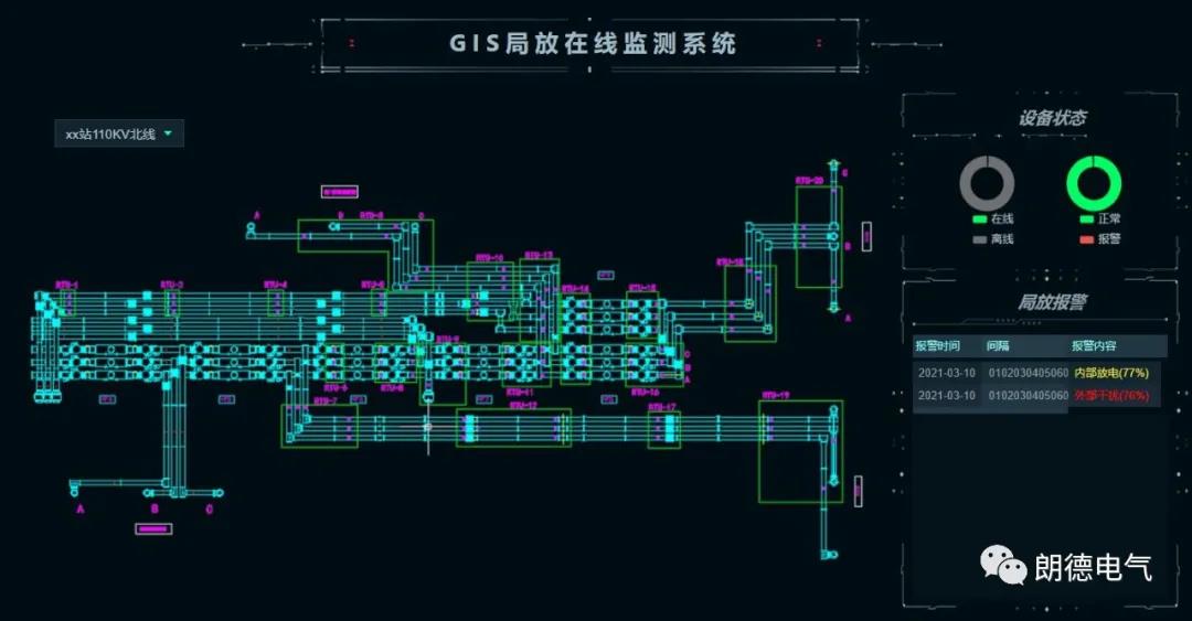 (1)系统采用TEV、超声波联合监测,可无死角监测开关柜不同类型的局部放电信号;